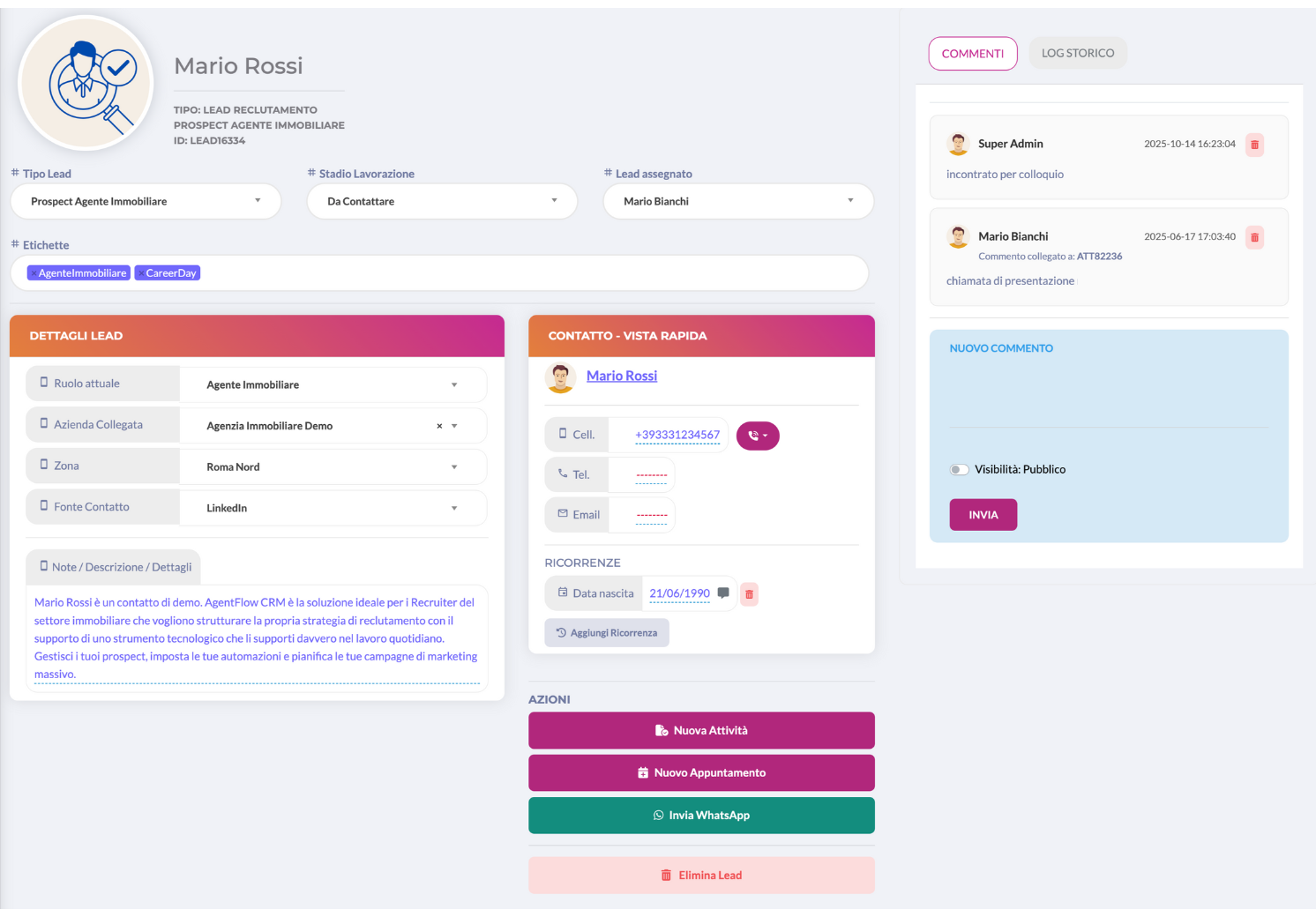 Potenzia la tua agenzia immobiliare con AgentFlow CRM. Il CRM che ti aiuta davvero a gestire e lavorare i contatti.